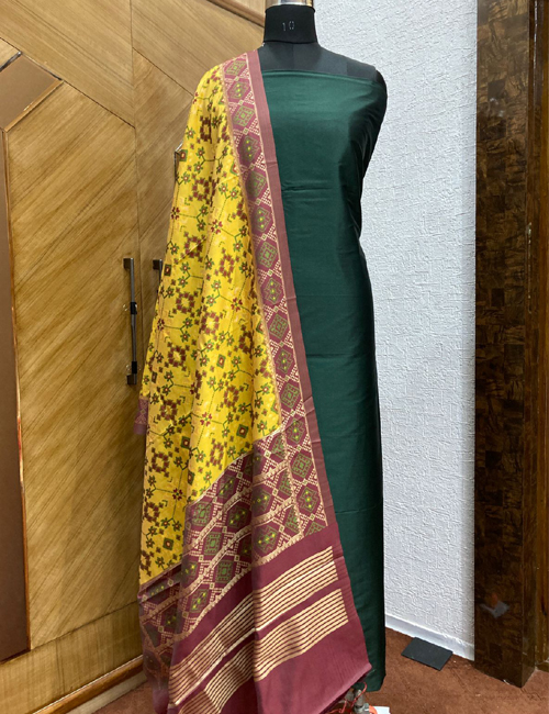 Enquiry for Banarasi Silk Patola & Multi Meena Weaved Silk Dupatta With Plain Silk Unstitched Salwar Kameez Suit