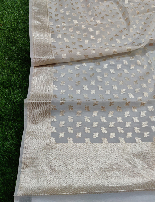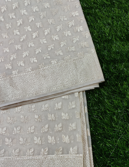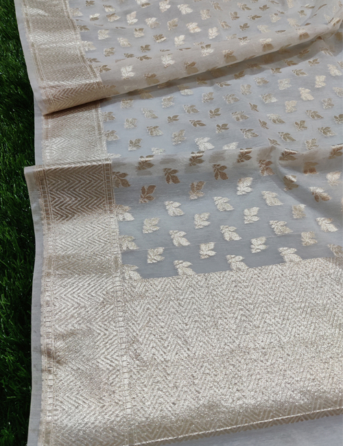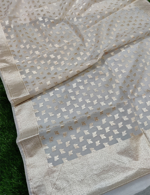 Enquiry for Dyeable Chanderi Silk With Leaf Mat Lorex Weaved White Dupatta