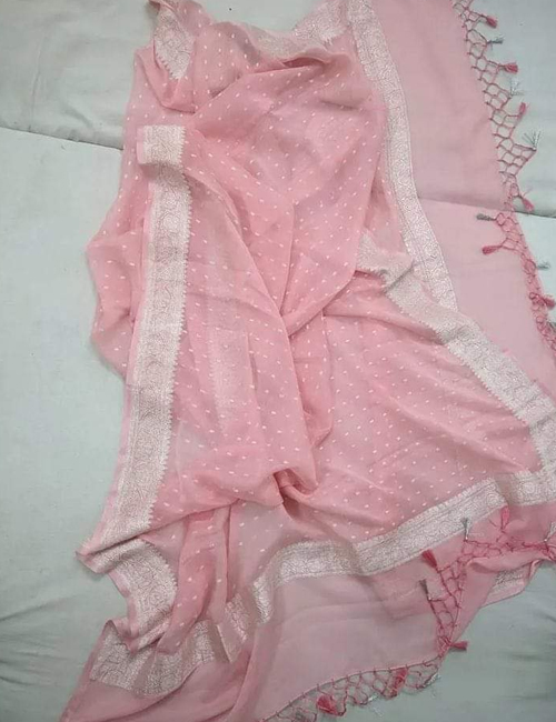 Enquiry for Light Pink Pure Handloom Khaddi Georgette Silk Silver Motifs Weaved Dupatta