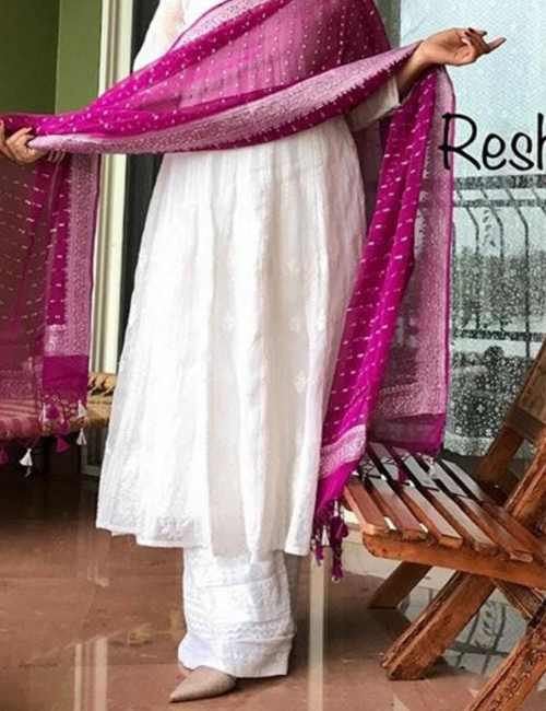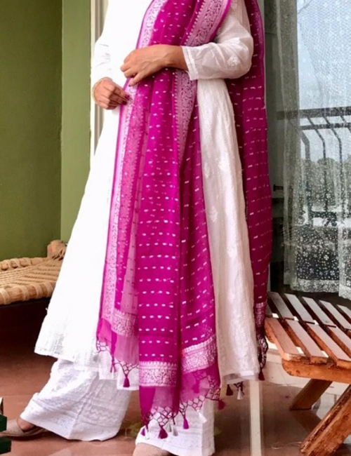 Enquiry for Light Purpal Pure Handloom Khaddi Georgette Silk Silver Motifs Weaved Dupatta