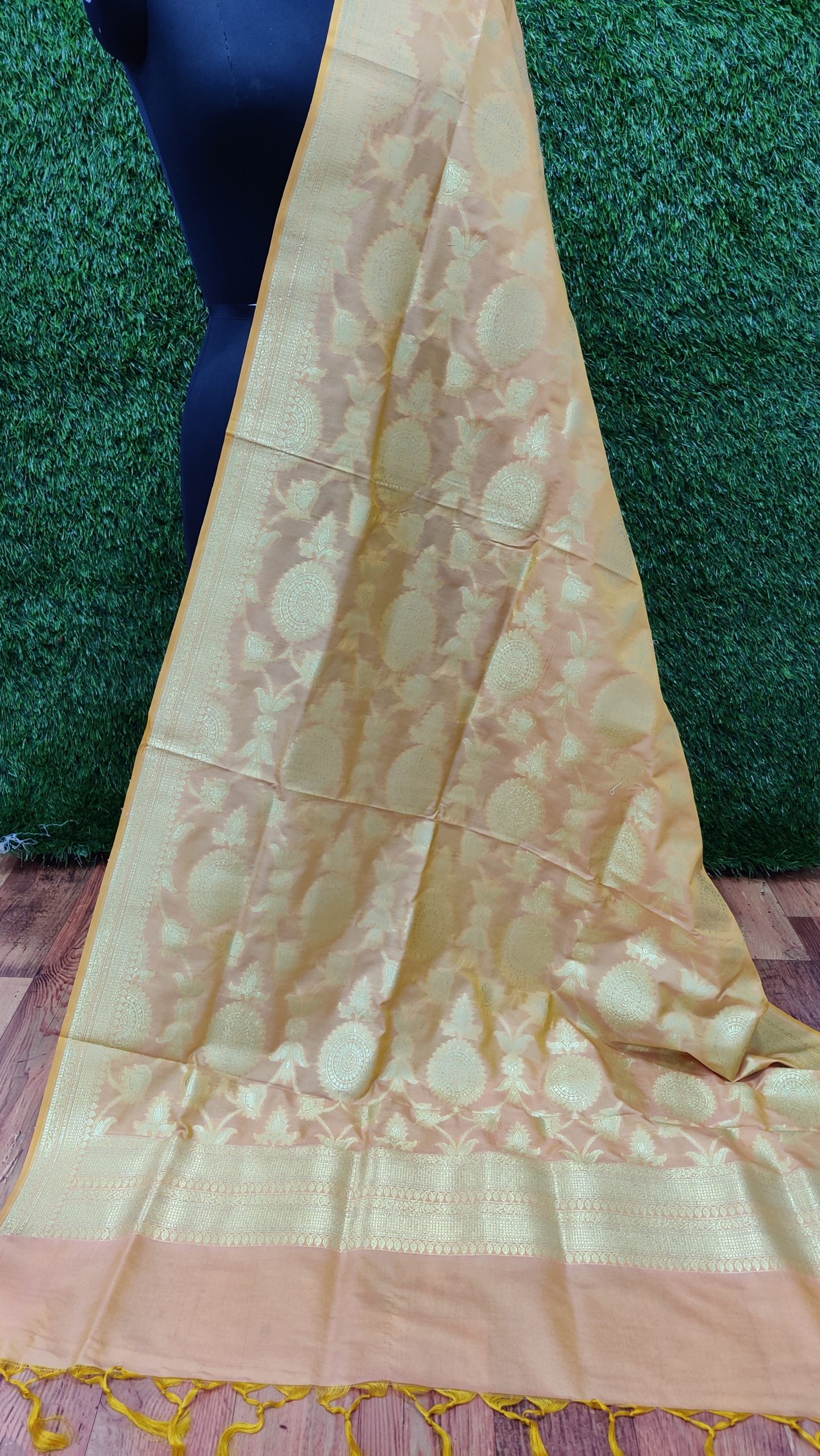 Enquiry for Musterd Yellow Banarasi Semi Katan Silk Gold Buta & Jaal Weaved Dupatta
