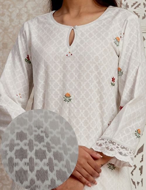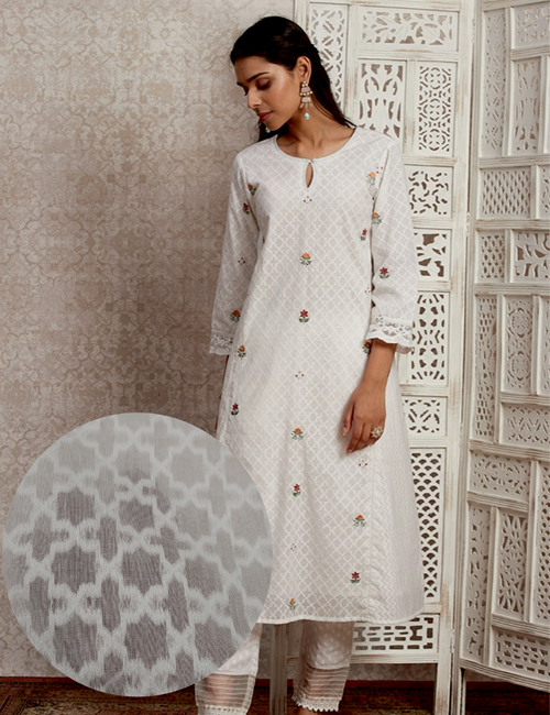 Enquiry for Off-White Cotton Silk with cotton jaal weaved brocade fabric-Dyeable