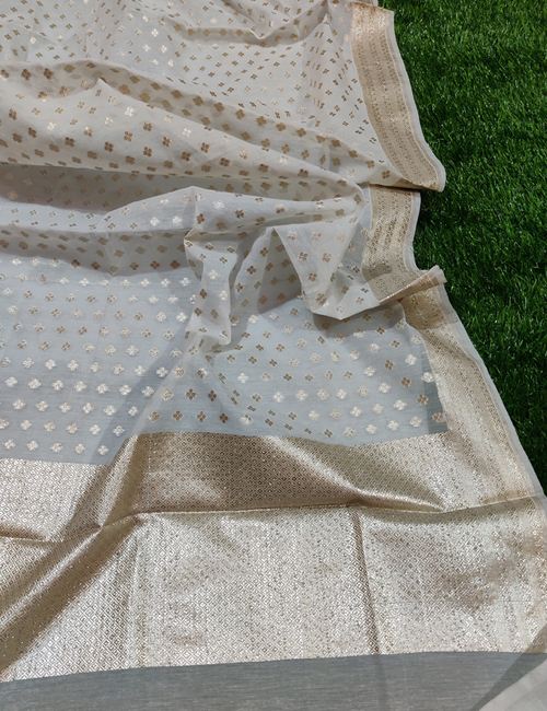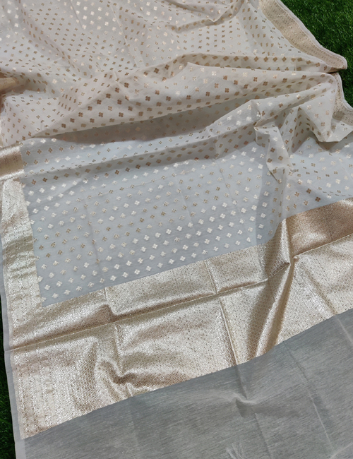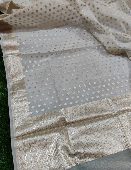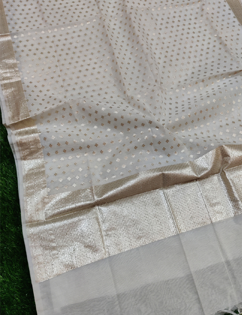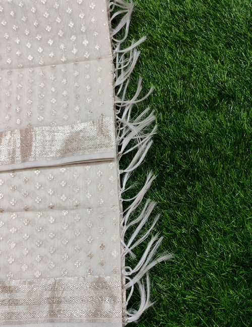 Enquiry for White Chanderi Silk Leaf Mat Lorex Weaved Dyeable Dupatta