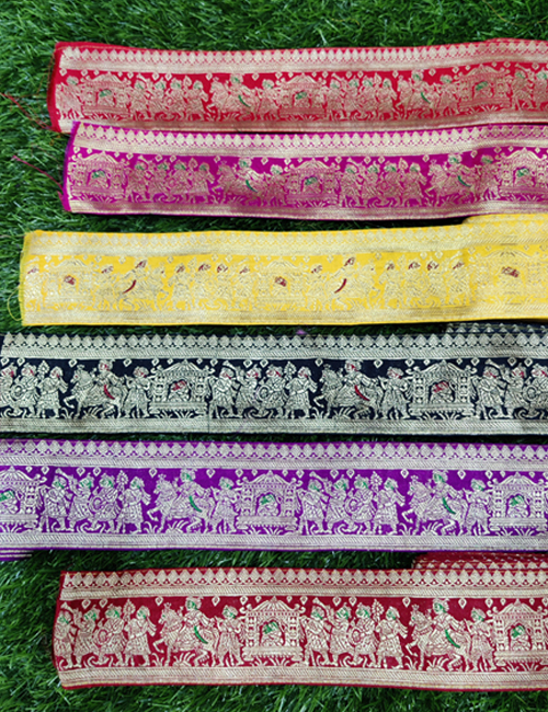 For every designer saree or designer dress a flamboyant Banarasi Handloom Painthani Silk Border adds real elegance. We offer Border in different sizes ( 1.5″ to 11 inches) . These are hand woven Silk Border available in different specifications as per the need of our esteemed clients. Please avail of our reasonable prices as per the market leading rates.