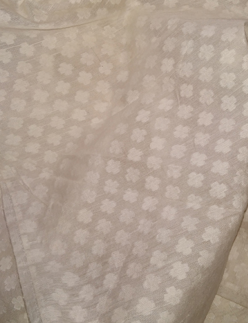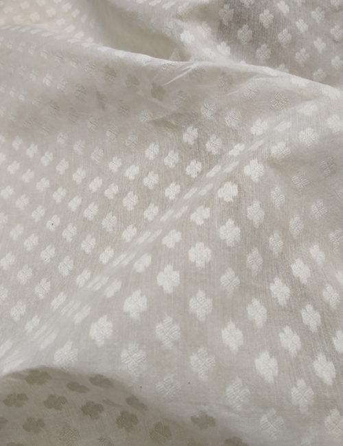 Off-White Chanderi Silk Mat Lorex Jaal Zari Weaved banarasi Fabric