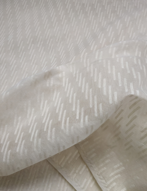 Off-White Chanderi Silk Mat Lorex Zigzag Weaved dyeable Banarasi Fabric