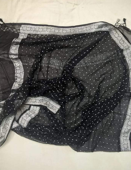 Black Pure Handloom Khaddi Georgette Silk Silver Motifs Weaved Dupatta
