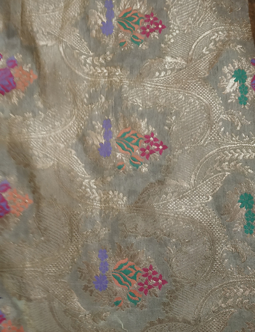 Grey Banarasi Handloom Khimkhab Silk With Multi Meena Weaved Brocade Fabric