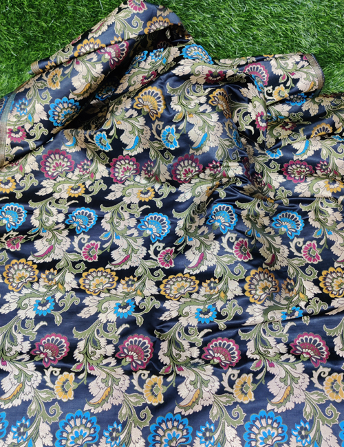 Navy Blue Banarasi Handloom Khimkhab Silk With Multi Meena Weaved Brocade Fabric