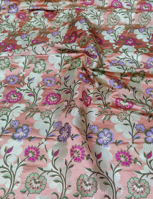 Pink Banarasi Handloom Khimkhab Silk With Multi Meena Weaved Brocade Fabric