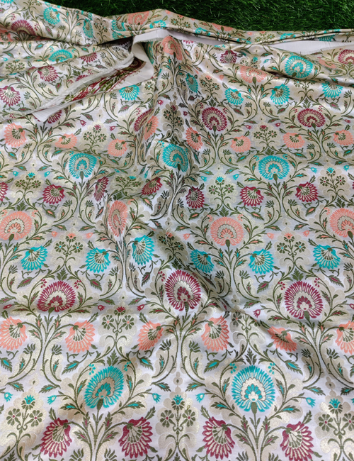 Cream Banarasi Handloom Khimkhab Silk With Multi Meena Weaved Brocade Fabric