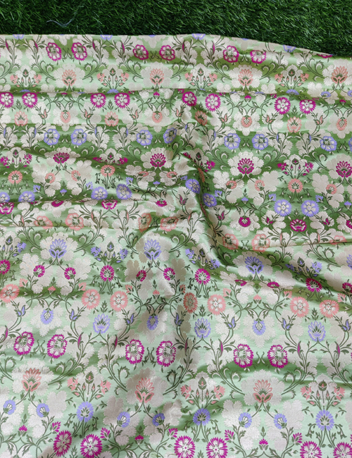 Pista Green Banarasi Handloom Khimkhab Silk With Multi Meena Weaved Brocade Fabric