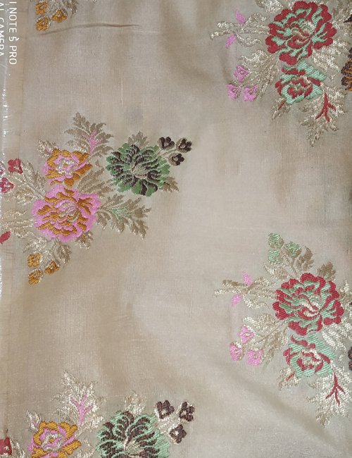 Cream Banarasi Handloom Khimkhab Silk With Multi Meena Weaved Brocade Fabric