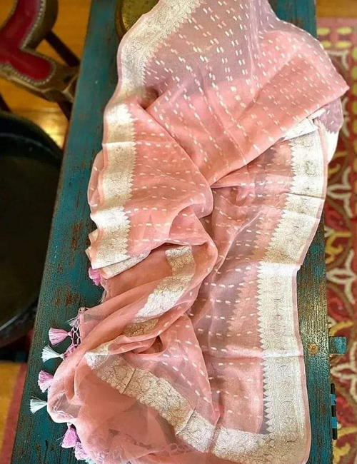 Pink Pure Handloom Khaddi Georgette Silk Silver Motifs Weaved Dupatta