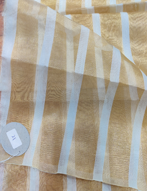 Pure Gold Tissue Silk With Spom Stripe Weaved Dyeable Fabric