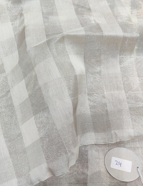 Pure Silver Tissue Silk With Spom Silk Stripe Weaved Dyeable Fabric